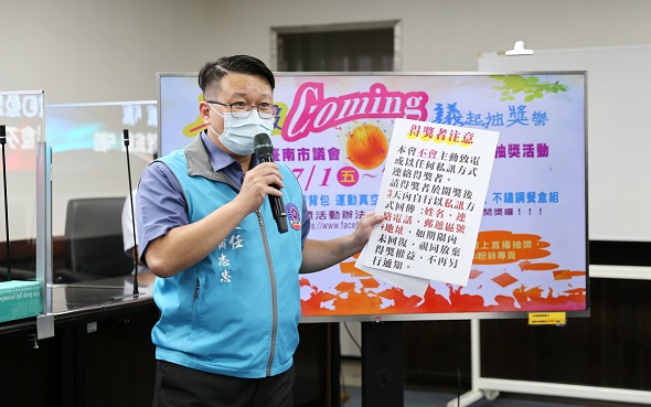臺南市議會指出,主辦單位不會主動致電或以任何私訊方式連絡得獎者,請得獎者於7月9日下午5點前,自行以私訊方式回傳姓名、連絡電話、郵遞區號+地址。如期限內未回復,視同放棄得獎權益。