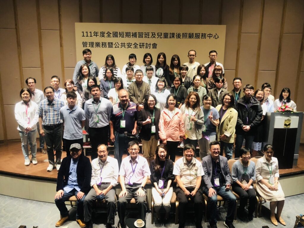 全國補習班及兒童課後照顧中心研討會在臺南舉行並合影。(記者黃伃綵攝)