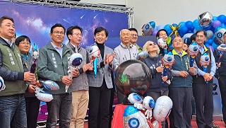 【民進日報記者黃伃綵台南報導】臺南南瀛天文館的天文展示館常設展於今(18)日隆重開幕,首先由全國常勝軍紅瓦厝國小帶來精彩的啦啦隊表演揭開序幕,隨後由臺南市葉澤山副市長、立法委員郭國文委員、臺南市教育局楊智雄副局長邀請眾多來賓共同體驗全新常設展,最後由成功大學陳炳志教授的團隊施放探空氣球為開幕儀式畫下完美句點。