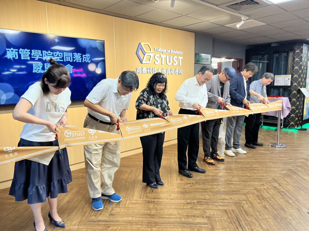 南臺科大代理校長周德光致詞表示,擔任商管學院院長多年,未能有機會改造院內空間,特別感謝時任張瑞星院長,能將商管學院空間改造美輪美奐,提供師生如此舒適的學習環境。主導此次捐款打造空間的南臺科大前副校長張瑞星表示,此次交流空間能夠順利改造,要特別感謝敏盛醫療體系及火金姑金融科技服務公司大力支持校務,各捐款200萬元挹注相關資源改建商管學院六樓的整層空間,上傑國際有限公司捐贈K-House電話亭KTV,也非常榮幸邀請到楊弘仁執行長與徐美華董事長親自蒞校為空間落成剪綵,剪綵典禮並於大家的感言影片中揭開序幕,為南臺科大商管學院共同見證這歡喜的時刻。