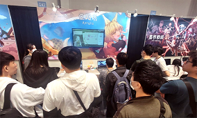 南臺科技大學多樂系與資管系聯手培育遊戲作品「亞路塔」於G-EIGHT展覽中展出,好評如潮。(記者黃伃綵攝)
