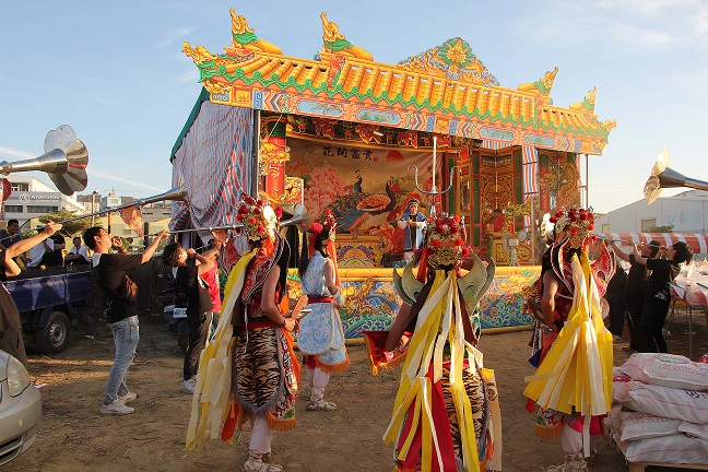 南臺科大官將首拜戲台情形。(記者伃綵攝)