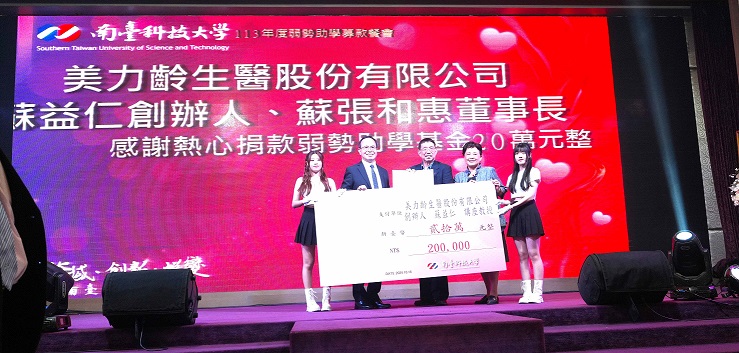 本屆募款餐會,眾星雲集,愛心滿溢,受到各界善心人士的熱情支持。美力齡生醫蘇益仁創辦人與蘇張和惠董事長、吳素蓮花女士、臺南市校友會、南臺老闆娘協會、南臺科大EMBA校友會等,皆慷慨解囊,分別捐贈20萬元、14萬元、36萬元、76萬元及58萬7000元,為弱勢學子築夢之路注入一股暖流,展現眾人齊心 愛心滿溢的力量。