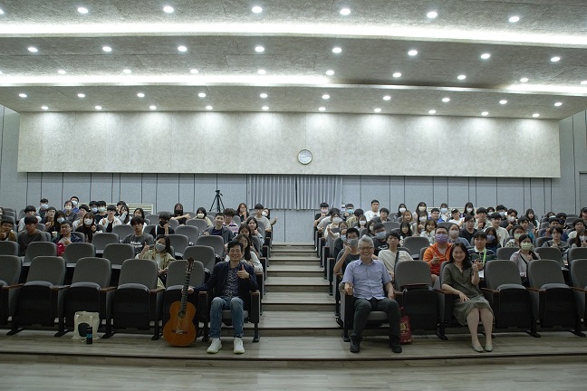 通識教育中心主任薛清江教授致詞時表示,此場大師講座以別開生面的形式辦理,將演講與演奏融為一體,期盼師生能在愉悅的氛圍中,認識吉他的相關知識,並體會吉他的樂音之美。