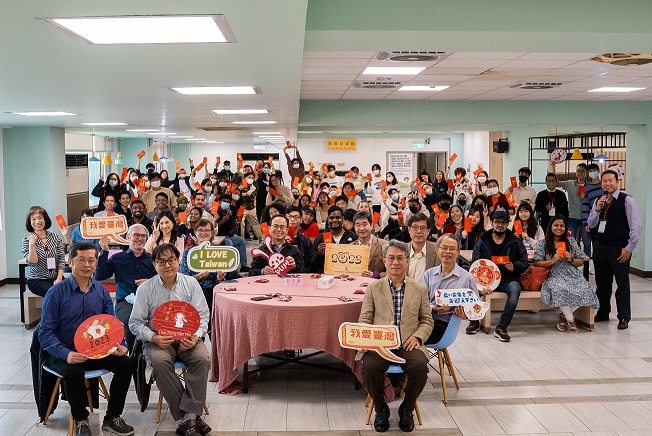 南臺科技大學外籍生華語文賀歲迎新春活動大合影。(記者黃伃綵攝)