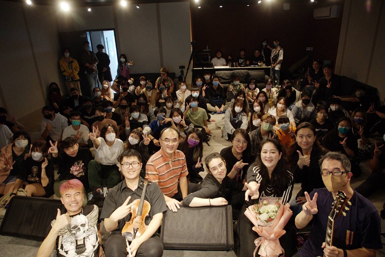 南臺科技大學流行音樂產業系特邀金曲女歌手依拜.維吉蒞臨舉辦四季的四季全新創作專輯演唱會之大合影。(記者黃伃綵攝)