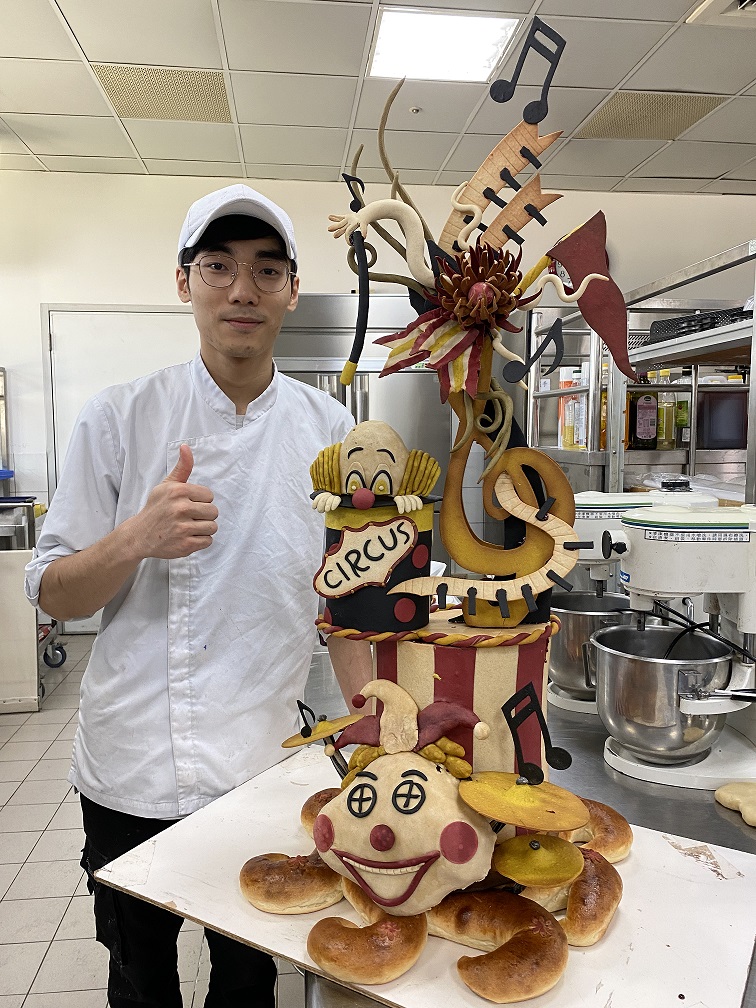 【民進日報記者黃伃綵台南報導】第53屆全國技能競賽(全國賽)今年繼疫情後,睽違三年再度在台北南港展覽館盛大舉辦,於7/17揭曉競賽成績,此次麵包製作全國賽係從北、中、南分區賽中,選拔出17位麵包好手一較高下,南臺科技大學餐旅管理系學生鐘偉誠在林政陞老師的指導下,競賽主題為「小丑」做創意發想,榮獲該競賽麵包製作職類銀牌,顯示南臺科技大學在餐旅技職教育實務的優異展現。