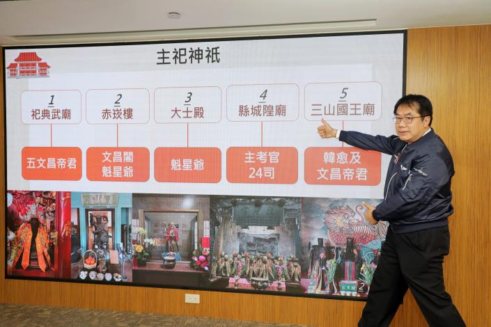 黃偉哲表示,台南是文風鼎盛的古都,有全台最早的全台首學孔廟,也有全台灣第一個大學,也就是長老教會的書院。許多廟宇供奉的文昌帝君,在考試前夕往往會有許多學生前來祈福求好運。這次南市府推出的考運散策,建議了最佳考運祈福路線,不到1公里就有5個參拜點,對時間寶貴的考生來說,可說是參拜祈福CP值最高。