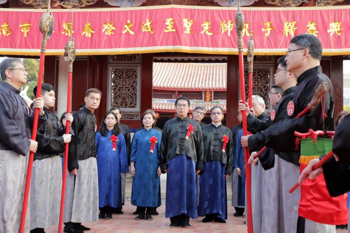 今日釋奠大典由台南市中西區公所區長汪慶龍、台南市立永康國民中學老師顏妙容、台南市安南區海佃國民小學老師沈錦玟、台南市後壁區新東國小老師黃雪芬、台南市安平區億載國民小學老師陳倩芳、台南市南化區南化國民學小學老師許游雅、台南市白河區白河國民小學老師沈千又、台南市安平區安平國民小學老師林淑美、財團法人台南市孔廟文化基金會董事石榮峯等人,擔任各分獻官,全程歷時約一小時,典禮莊重肅穆;市議員許至椿也到場參加,表達對孔子至聖先師的尊崇。