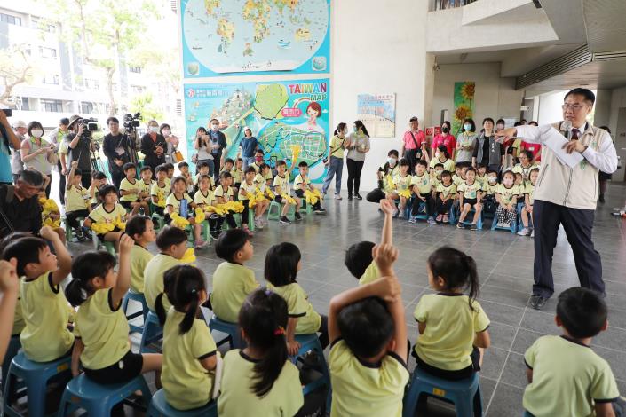 黃偉哲前進校園呼籲正確洗手遠離腸病毒。(記者黃伃綵攝)