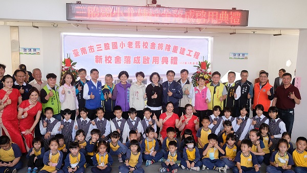 市長黃偉哲表示,三股國小創設於民國39年,迄今已超過70載,為歷史悠久的學校,北棟老舊校舍經鑑定耐震能力不足,市府為了落實校園安全防護,提供師生安心學習的處所,特別辦理北棟老舊校舍拆除重建,並透過建築師的巧思設計及廠商的優質施工,打造環保、健康、省能、減廢的校園建築,營造出校園建築新風貌。