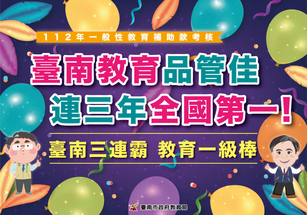 【民進日報記者黃伃綵台南報導】臺南市政府教育局新聞秘書吳幸樺表示,臺南市近年來致力推動各項教育政策,針對中央一般性教育補助款考核項目,透過定期會議列管進度、如期如質達標,今年考核成績再度奪冠,已連續三年全國第一,優質的教育品質管理成效有目共睹。