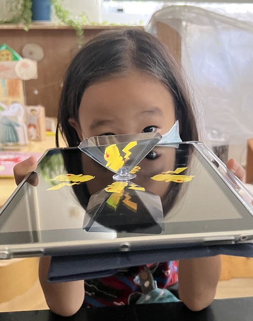 大同國小附設幼兒園孩童體驗AI的藝術創作技術與全息投影製作原理,感受元宇宙的魅力和未來潛力,激發了孩子們新科技的興趣和熱情。(記者黃伃綵攝)
