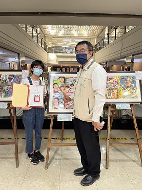 南新國中蔡雨辰(左二)特優作品獲黃偉哲市長表揚。(記者黃伃綵攝)
