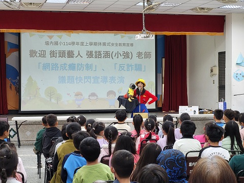 市長黃偉哲指出,小強老師運用腹語技巧,與鸚鵡布偶進行互動對話,藉此提醒學生長時間沉迷網路可能對學業表現及人際關係造成負面影響。期望透過活動傳遞「聰明用網、從你我開始」的理念,培養孩子智慧生活、健康成長的態度,同時也提醒學生,不論是網路交友、線上遊戲、網購或查詢資料,都潛藏遭遇詐騙的風險,除提高警覺外,更要具備批判思考能力,能夠辨識網路訊息真偽,避免誤入詐騙陷阱。