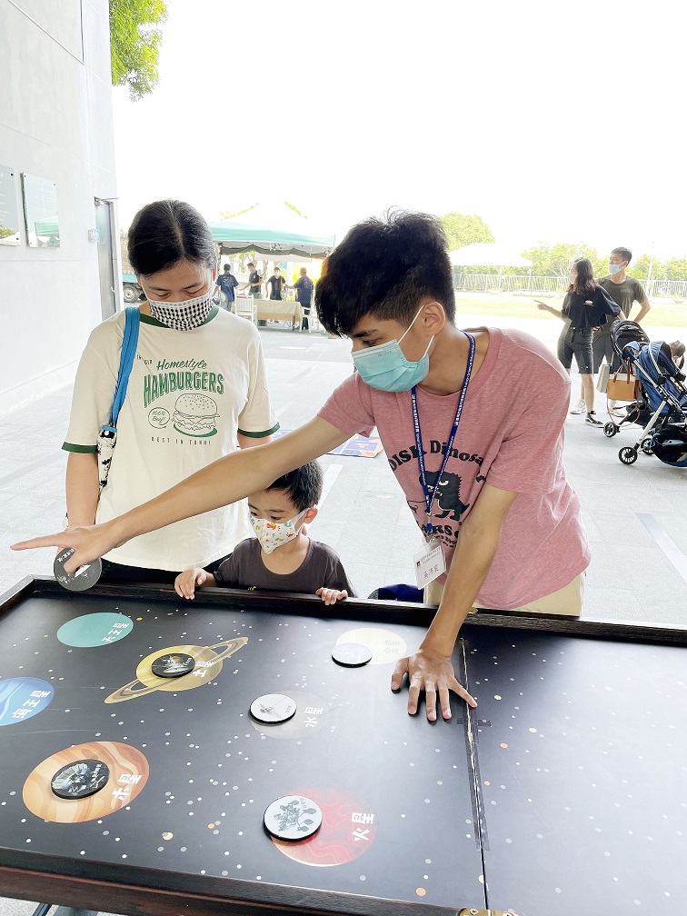 南瀛科教館何秋蓮館長表示,連假期間規劃多元豐富的活動如「天文夜市闖關」,可以了解太空探測器探索行星任務的「星際先鋒」、訓練手眼協調能力的「丟丟土星環」、兼具大膽及細心的「九星連珠」,還有挑戰準度與力道的「不可能任務」,闖關集滿3個印章即可兌換天文好禮!此外還有憑套票享有銅板價體驗的DIY「彩色陶土」、「星球蠟燭」;4月2日至4日下午更有免費體驗的「瘋狂大地遊戲」現身賽堤廣場,「歡樂氣球傘」、「經典紅綠燈」、「左右跳跳樂」輪番上場,滿足大小朋友勇闖太空的夢想及渴望!