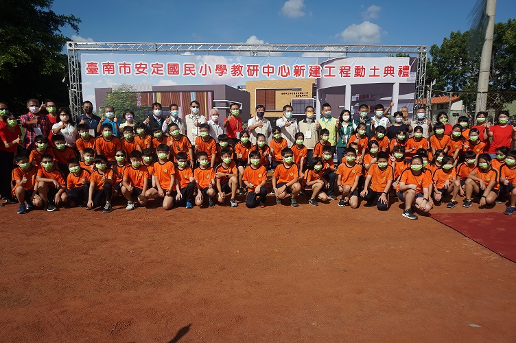 臺南市教師綜合研習中心落腳安定 新建工程隆重動土後合影。(記者黃伃綵攝)