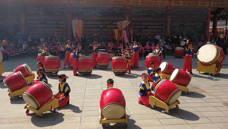 土城國小擊鼓樂團每年受邀至鹿耳門聖母廟進行元宵節慶表演。(記者黃伃綵攝)