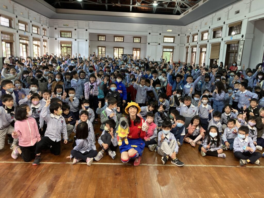 街頭藝人快閃校園至忠義國小宣導防制網路成癮。(記者黃伃綵攝)