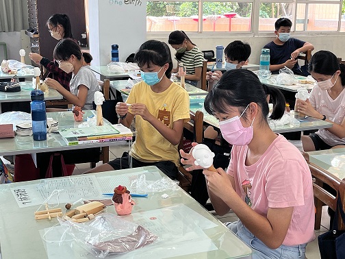 黃美芳校長表示,南新國中美術班聘請藝師傳承懸絲偶工藝,藉由製作傳統懸絲偶、欣賞偶戲及編寫劇本,學子跨領域學習鄉土語言及表演藝術,並進一步傳播閩南方言文化,再現傀儡風華。
