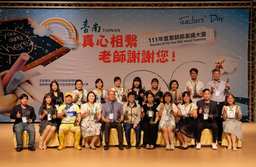 【民進日報記者黃伃綵台南報導】臺南市政府教育局新聞秘書吳幸樺指出,迎接教師節,臺南市教育局昨日於樹谷音樂廳舉辦111年教師節表揚大會,表揚3位全國師鐸奬、2位全國教育奉獻奬、24位臺南市師鐸奬、10位優良特殊教育人員及799位資深優良教師。由臺南市副市長趙卿惠蒞臨現場頒奬、合影,並代表臺南市長黃偉哲感謝教師為莘莘學子辛勤付出,陪伴走過成長旅途。
