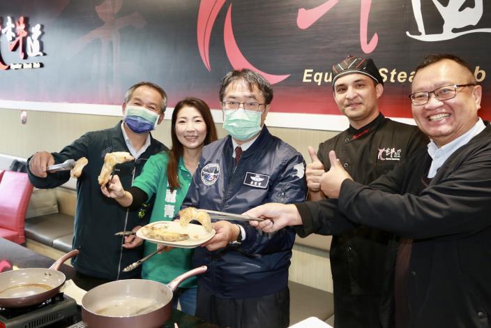 【民進日報記者凃政宏台南報導】台南的民眾有口福了!台南在地養殖業品牌「台江漁人」與台南牛排店家「赤牛道」合作,將優質龍膽石斑加入排餐海陸雙拼組合,將在赤牛道總店搶先推出,未來也會在百貨美食街供應,讓台南民眾新年假期再多一項美食口袋名單。台南市長黃偉哲今(12)日也前往參加「龍膽石斑排料理發表記者會」,與議員蔡麗青等貴賓一同支持台南漁產與餐飲業者合作,拓展銷售通路。