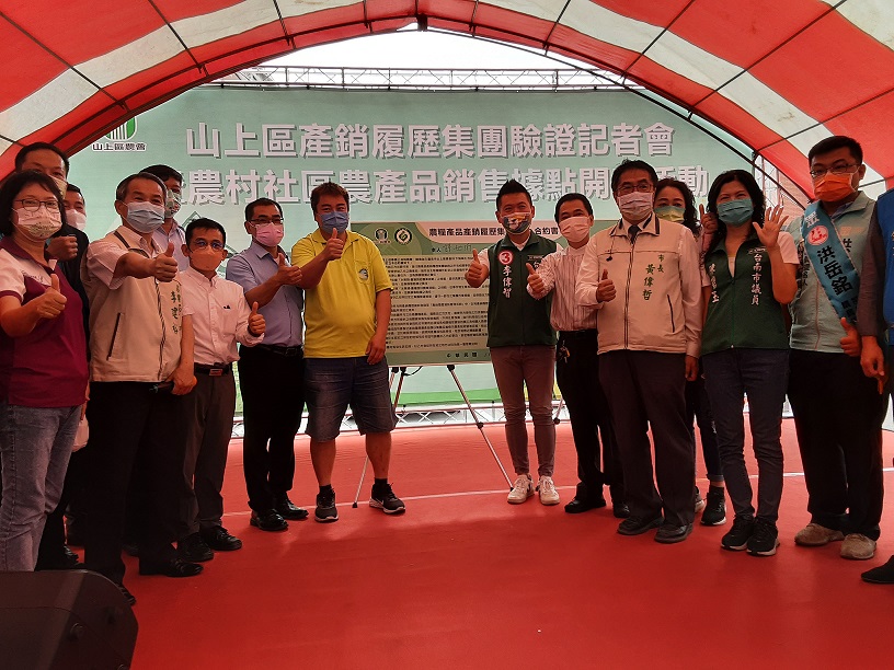台南市山上區農會於昨日上午10時30分在農會前舉行農村社區小舖重新裝潢後的開幕典禮,並由青農代表與林志勇簽署農糧產品產銷履歷集團驗證合約書,及由黃偉哲簽名見證,黃偉哲也致詞指出,山上農會努力輔導今年度總共通過10.6公頃產銷履歷集團驗證,農產品生產、加工到產品行銷的六級化發展成果十分豐碩。