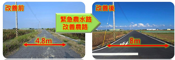 另外東西四路、東西五路、南北幹路三之一及南北幹路三之二等四條農路改善工程,改善經費共888萬餘元,改善長度合計達1,829公尺,亦已於114年11月13日完工驗收,不僅提升農機具作業便利性,同時劃設路側邊線及反光導標後加強夜間行車的安全性。該區域周邊主要農作物盛產紅蔥頭、高粱、洋香瓜等為大宗,改善後農路大幅提升農產品運輸效率,有效促進現代化農業發展,增加農民的收入和競爭力。