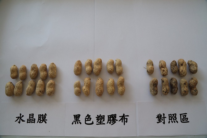 農改場利用不同色彩塑膠布覆蓋落花生果莢品質比較。
