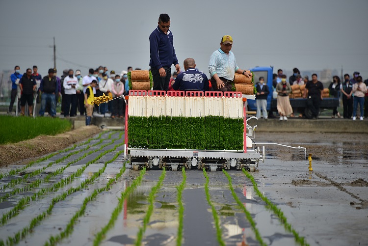 臺南區農業改良場引進紙蓆插秧機,可大幅減少有機田區人力負擔,提高產業價值,增加有機栽培面積。
