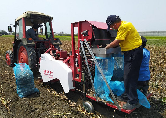 臺南區農業改良場研發附掛式挖掘型大蒜收穫機紓解人力缺乏