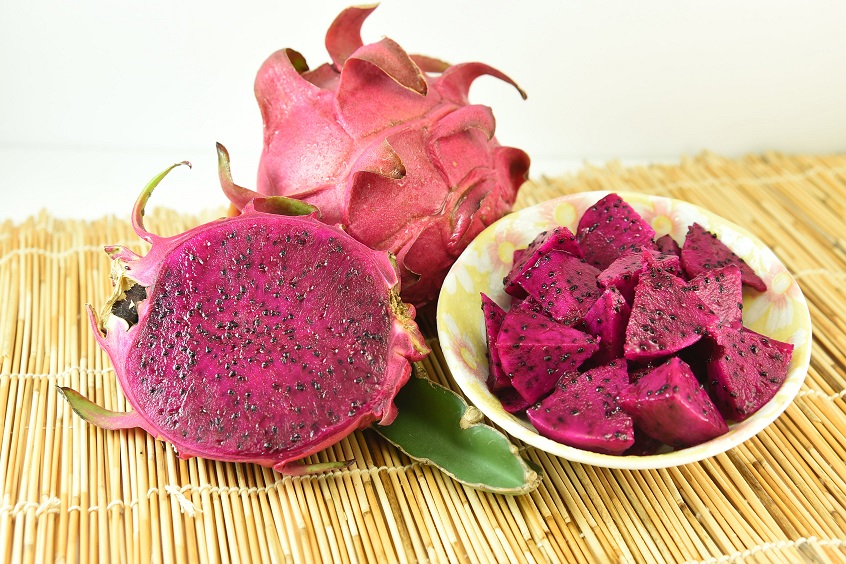紅龍果外觀鮮紅飽滿又喜氣,白肉種口感清甜爽脆,紅肉種口感細軟多汁,甜度高且帶香氣,並含有豐富的甜菜紅素,具有抗氧化的效果,而且紅龍果有豐富的礦物質及維生素,尤其鐵質為蘋果的8倍、奇異果的2倍及櫻桃的4倍;鎂為蘋果的8倍、奇異果與櫻桃的2倍,維生素C及維生素B2 與B3均為蘋果的2倍,除此之外,也有豐富的膳食纖維及果膠類物質,對潤腸通便的效果相當顯著,脾胃虛寒者則應避免食用過量,以免腹瀉。