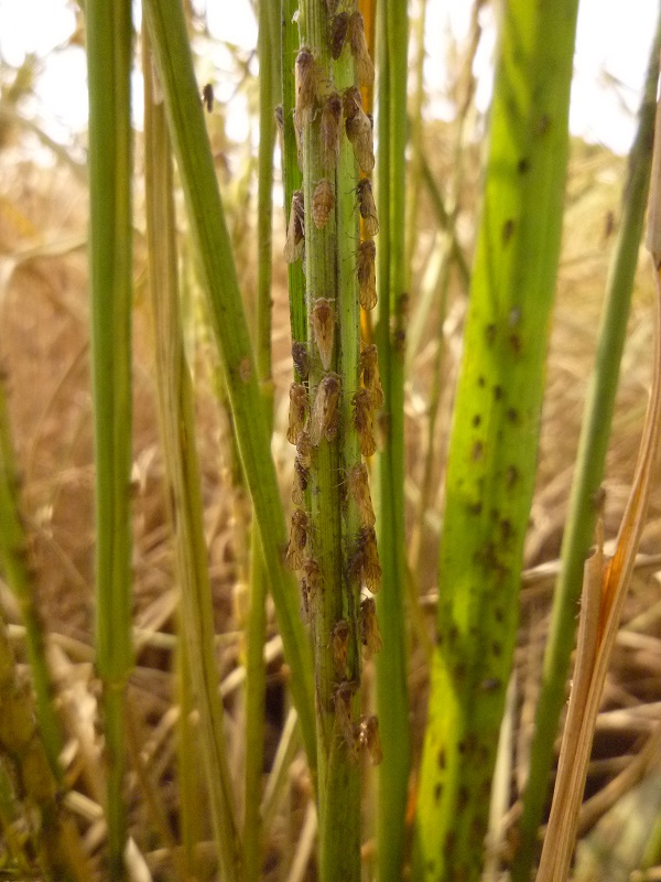 飛蝨成蟲聚集危害二期稻作。(記者蔡金旺攝)