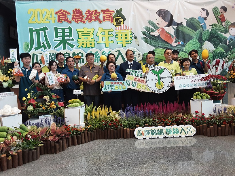 【本報記者蔡金旺台南報導】2024食農教育暨瓜果嘉年華活動,於昨日上午10時在臺南區農業改良場行政大樓一樓舉行記者會,場長羅正宗強調,今年以「瓜瓞綿綿 絲絲入苦」為主題,在活動當天有多家業者展售各類瓜果與蔬菜品種,臺南市青農聯誼會配合辦理公益展售活動,4日當天攤位所得將全數捐給0403花蓮地震賑災。
