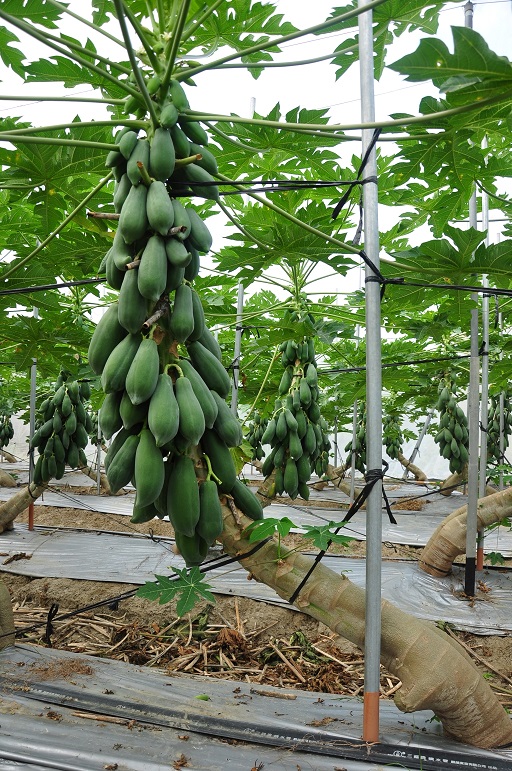 木瓜於颱風前應設立支柱以繩索固定至少兩處避免受風斷折。