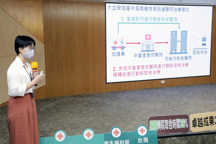 成大醫院宋碧姍醫師說明,成大中風中心與成功大學醫學工程研究所林哲偉教授團隊,自民國109年開始研發大台南地區急性中風病患轉診系統,希望建置一個資訊安全的環境,有效率並系統性進行急性中風病患轉診,便捷轉診效率,在第一時間搶救急性缺血性腦中風病患,降低失能的程度。該系統於110年10 月正式投入台南區急性中風轉診網絡,供台南市中重度急救醫院,進行有需要進行動脈血栓移除治療評估的病患轉診使用。