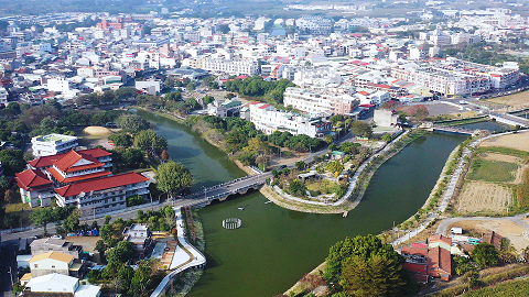 (由左至右)慈心基金會執行長蘇慕容、金門縣縣長楊鎮浯、小金門(烈嶼鄉)鄉長洪若珊,以及金門縣林務所所長鐘立偉,於小金門進行植樹合作簽約儀式。