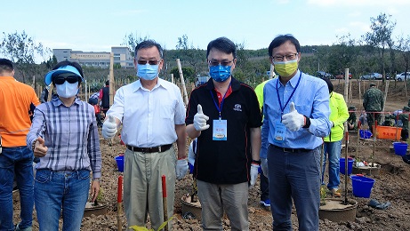 慈心基金會書與澎湖縣政府、和泰汽車三方官民合作造林,為澎湖種下無限希望(右起慈心基金會執行長蘇慕容、和泰汽車協理韓志剛、澎湖縣長賴峰偉、議長劉陳昭玲。