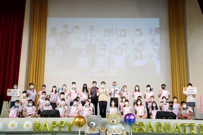 市長黃偉哲表示,感謝老師與家長的辛勞付出,為了讓孩子在畢業若干年後仍充滿美好回憶,因此在兼顧防疫下舉辦畢業典禮,目前台南市確診率低於全國約3%,其中5-11歲學童的確診率更低於全國約4%,在疫情高峰於中南部蔓延當下,他呼籲每位同學、家長要保持健康、落實防疫,完整接種疫苗、戴好口罩、保持社交距離,並祝福畢業生於未來的考試、或人生道路上都有非常好的發展。