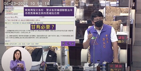 台南市議員許又仁市政總質詢自由發言與市長補拍合照是美意但不應造成學校教師行政負擔