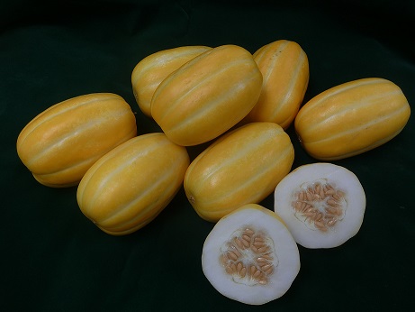 【記者蔡金旺台南報導】為配合炎炎夏日消費者消暑水果需求,臺南區農業改良場再創佳績,培育出新品種臺南15號「東方甜香瓜」,最大的特色是耐熱、早熟,果實色澤亮黃嵌有銀條斑,而且首創在水果界可連皮帶籽全果食用,農改場長楊宏瑛昨日強調,將有助替台灣水果再添新生力軍。