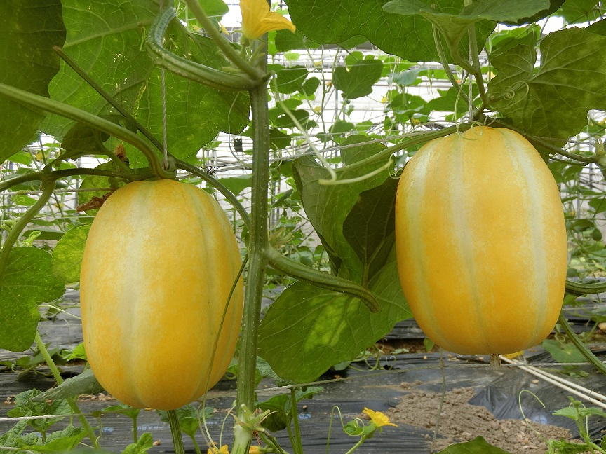 臺南區農業改良場新培育臺南15號直立栽培東方甜香瓜。(記者蔡金旺攝)