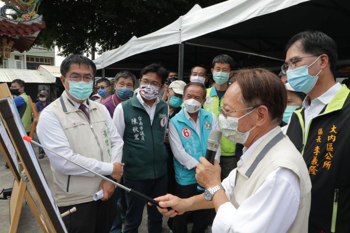 黃偉哲聽取蘇金安所做建構大內區便捷路網簡報。(記者蔡金旺攝)