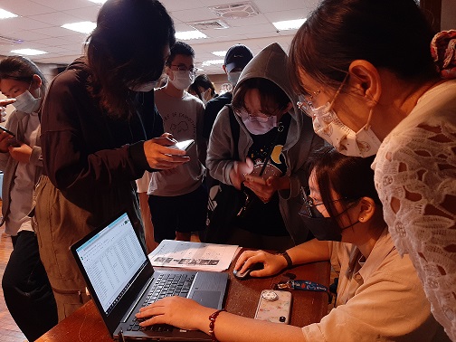 南臺科大彩繪花燈自主學習專題課程學生認養住戶的情形。(記者黃伃綵攝)