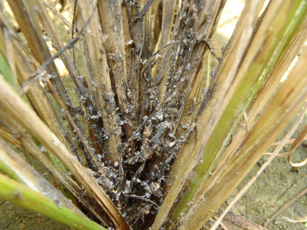 臺南區農業改良場指出,田間常見飛蝨類有褐飛蝨、白背飛蝨及斑飛蝨等。褐飛蝨成蟲及若蟲危害時,群集於稻叢基部刺吸稻株養液為食,被害株之基部常可見污濁之分泌物或由分泌物引起之煤煙病。在褐飛蝨族群密度低時,由稻株外表無從察覺異狀;族群密度再增加時,則可導致稻株黃化,影響稔實率。發生危害時,可致使稻株於短期內枯萎倒伏,稱之為「蝨燒」。飛蝨為遷飛性害蟲,於二期稻作栽培期間隨西南氣流引入,在環境條件合適下迅速繁殖,在水稻乳熟期至糊熟期間為害最嚴重。