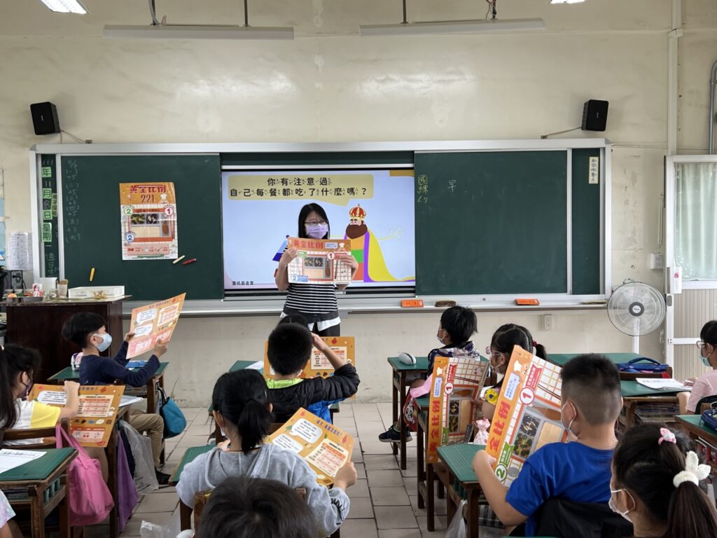 佳里小營養師餐前5分鐘入班宣導。(記者黃伃綵攝)