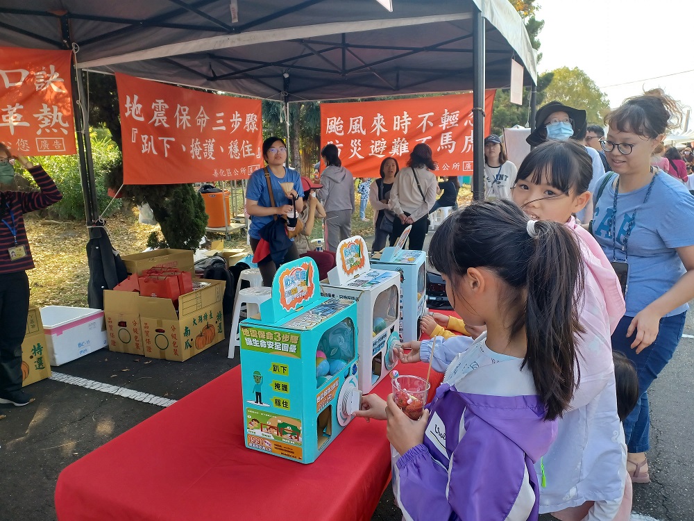 本次宣導亦加入有獎徵答的活動,將想要向民眾宣導的防災知識做成問答題的字條,放入扭蛋中,然後再置入扭蛋機內,讓現場民眾轉動扭蛋機,回答隨機落下扭蛋中所包含的題目,以寓教於樂的方式,增加趣味性,並對參與的民眾贈送宣導品,吸引民眾的參與,若有民眾回答錯誤,就再重申此題目所要傳達的防災知識,以互動的方式,加深民眾對防災知識的記憶。