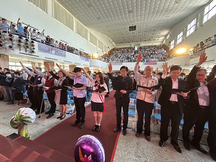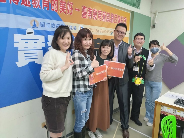 南臺科大執行「未來進行市-臺南市地方文化特色整合5G應用與落地計畫」成立「MoreReal Lab 5G文化科技實驗基地」之揭牌啟用典禮合影。(記者黃伃綵攝)