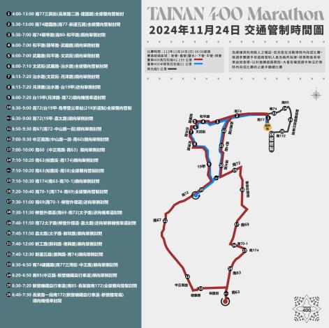 臺南400馬拉松挑戰賽11/24登場交通管制資訊一次看 。