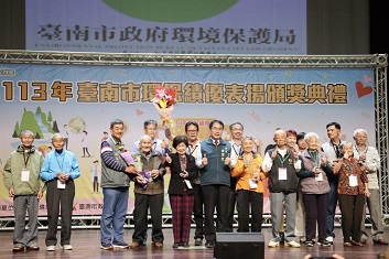 113年台南市環保績優表揚典禮於今(5)日上午在南區虹韻文創中心舉行,現場超過500位環保志工夥伴聚首,共同為200多位得獎者及單位喝采,市長黃偉哲親臨頒獎,並代表全市的市民,向這些默默守護環境的志工們及企業與團體致上最高敬意,感謝他們的無私付出,讓生活環境與衛生都變得更好。